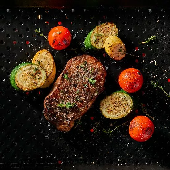 Make mouth-watering meals for one on the grill with this enamel mini topper tray from Food Network.