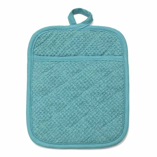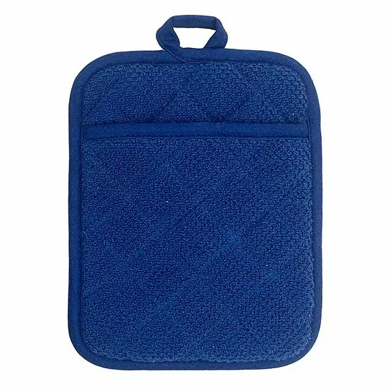 Get a safe grip on hot dishes with this Food Network terry pot holder.